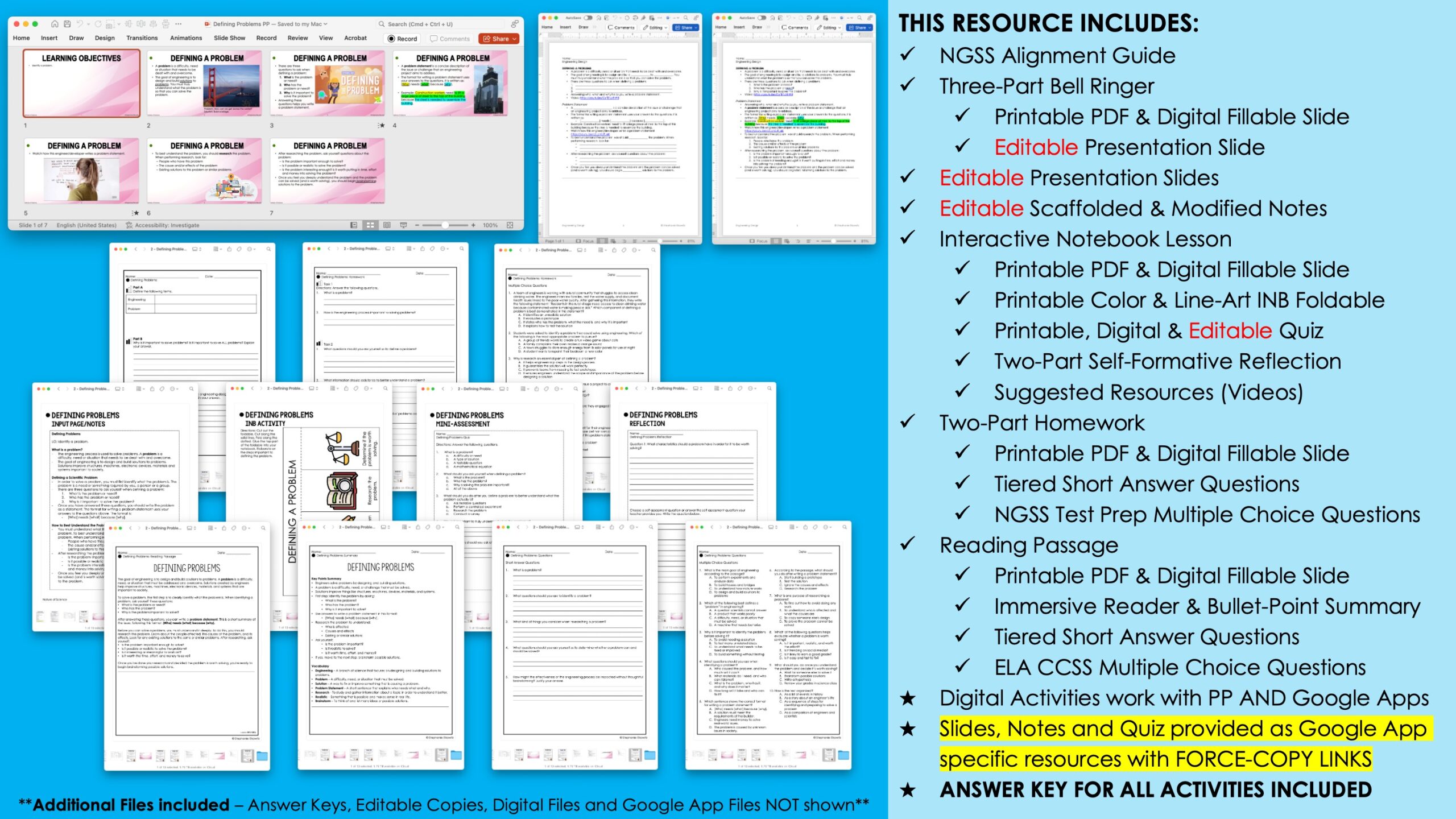 The INB lesson comes in a printable and digital form. The printable form includes an overview with the LO(s) and NGSS/DCI alignment, one page of input notes, at least one INB activity, a 4-5 question quiz and a two-part reflection exercise. The digital INB lesson is a fillable slide compatible with PowerPoint and Google Slides and includes editable input notes, a digital INB activity and a digital reflection exercise. A force-copy link for a digital Google Form quiz included. Editable DOCX files of the input notes and quiz are included. Key included.