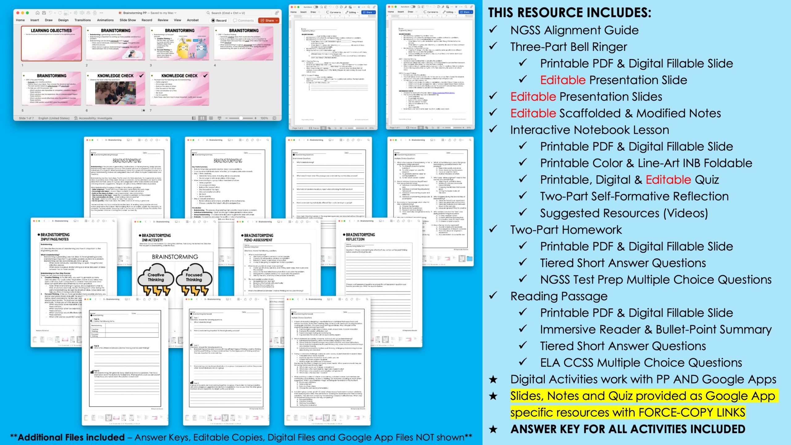 This download includes presentation slides, scaffolded (fill-in-the blank) notes and modified notes. These resources are 100% EDITABLE. Downloaded files (PPTX and DOCX) are optimized for PowerPoint and Word. Force-copy links for files optimized for Google Slides and Docs included.