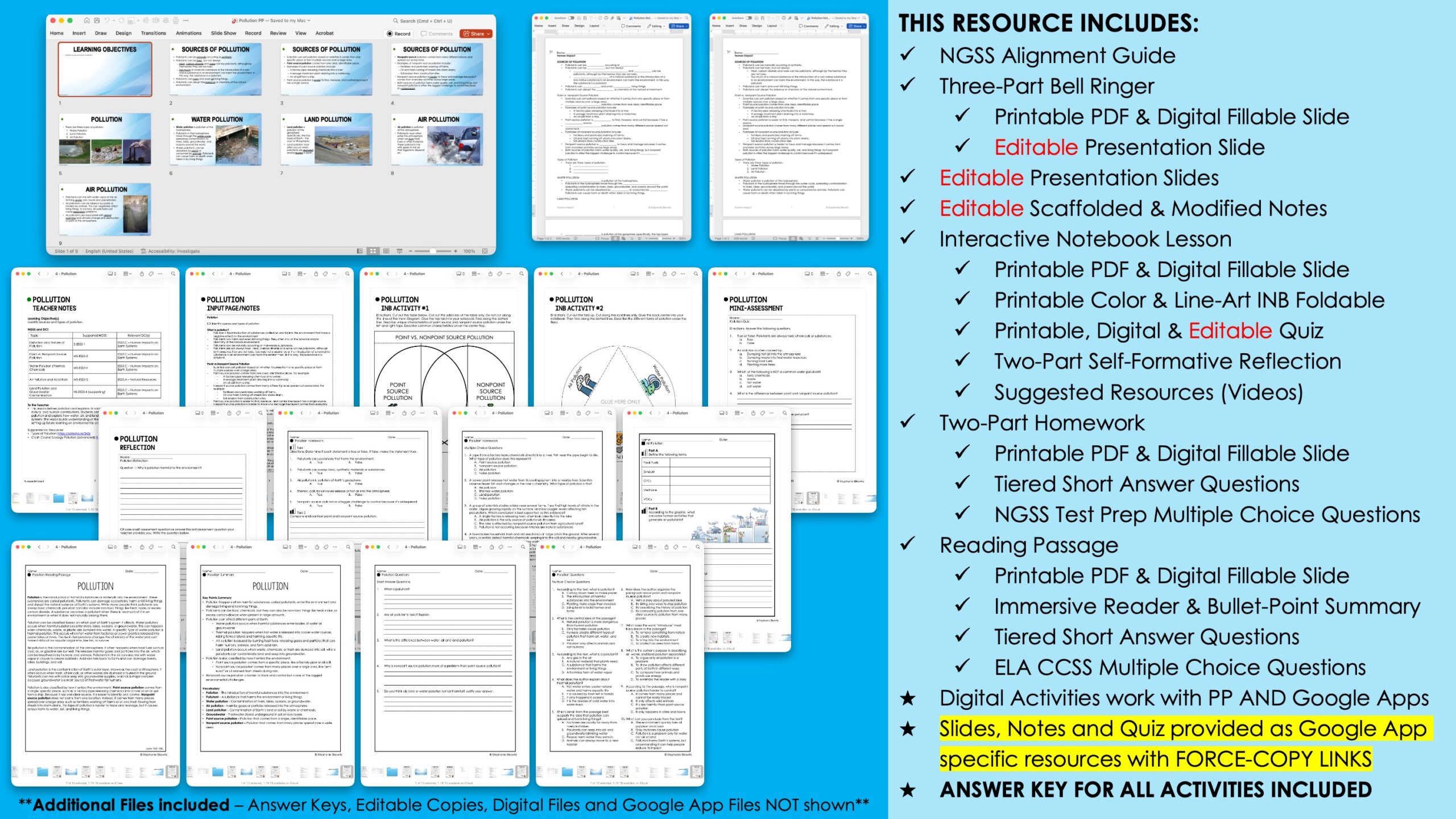 A no-prep, everything-you-need lesson that helps students study different types of pollution. Printable and digital resources with editable components included.