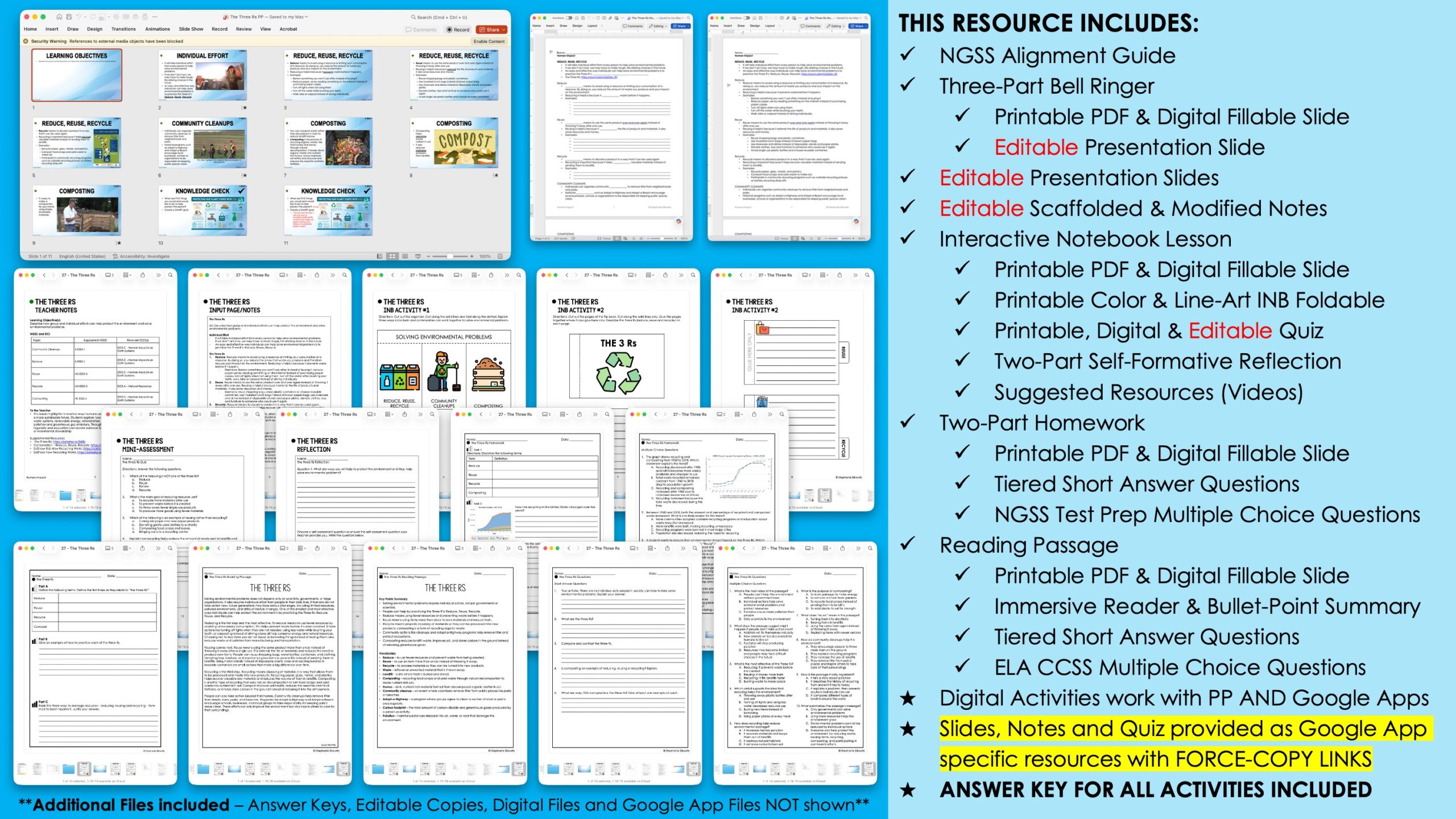 The INB lesson comes in a printable and digital form. The printable form includes an overview with the LO(s) and NGSS/DCI alignment, one page of input notes, at least one INB activity, a 4-5 question quiz and a two-part reflection exercise. The digital INB lesson is a fillable slide compatible with PowerPoint and Google Slides and includes editable input notes, a digital INB activity and a digital reflection exercise. A force-copy link for a digital Google Form quiz included. Editable DOCX files of the input notes and quiz are included. Key included.