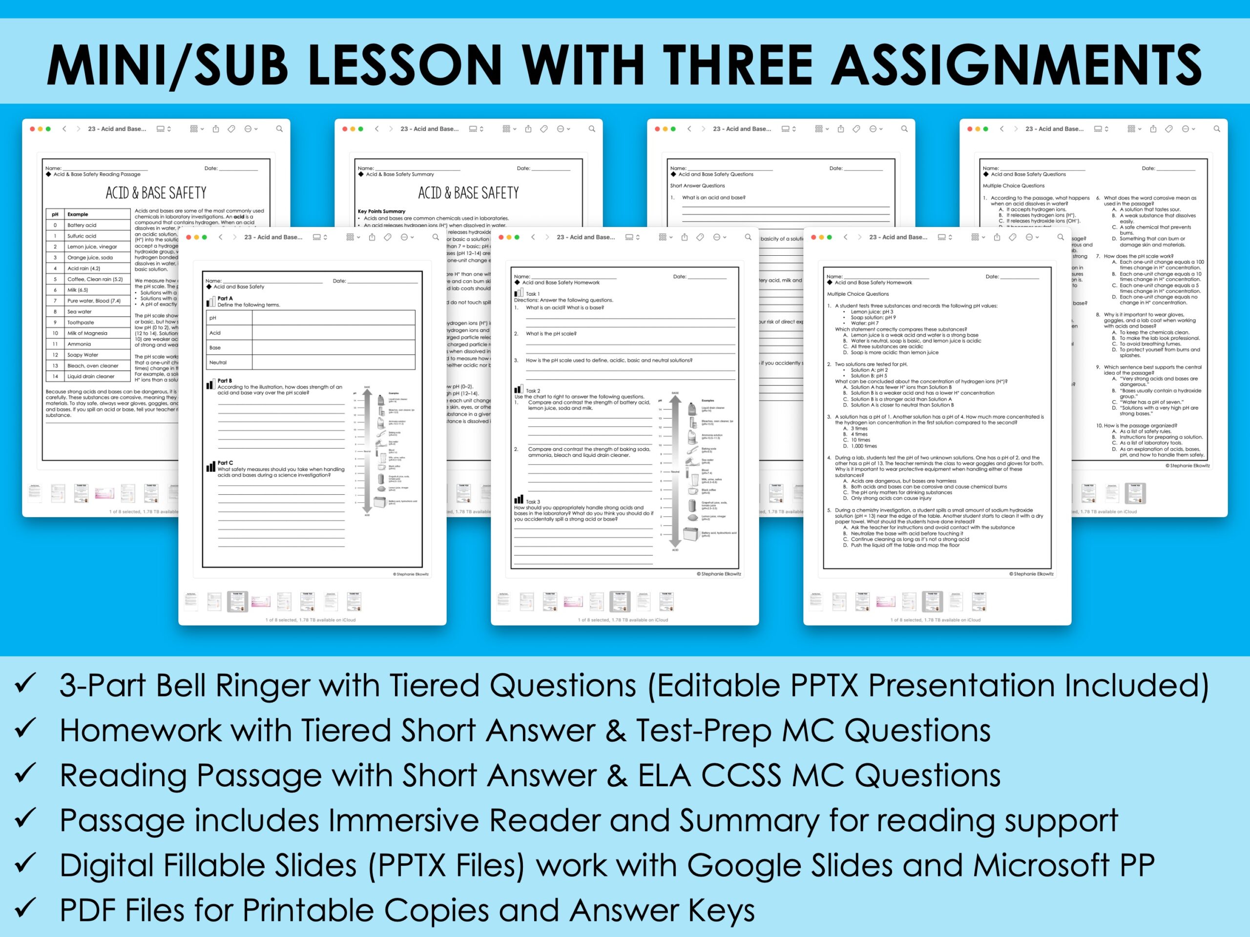 Acid and Base Safety Mini Lesson | Sub Plans