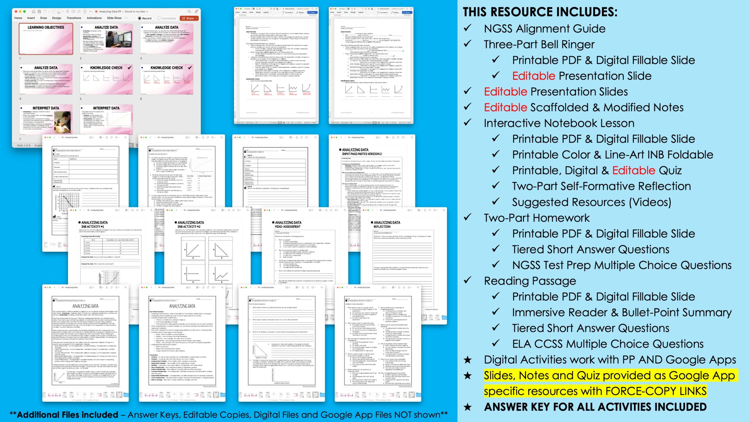 The INB lesson comes in a printable and digital form. The printable form includes an overview with the LO(s) and NGSS/DCI alignment, one page of input notes, at least one INB activity, a 4-5 question quiz and a two-part reflection exercise. The digital INB lesson is a fillable slide compatible with PowerPoint and Google Slides and includes editable input notes, a digital INB activity and a digital reflection exercise. A force-copy link for a digital Google Form quiz included. Editable DOCX files of the input notes and quiz are included. Key included.