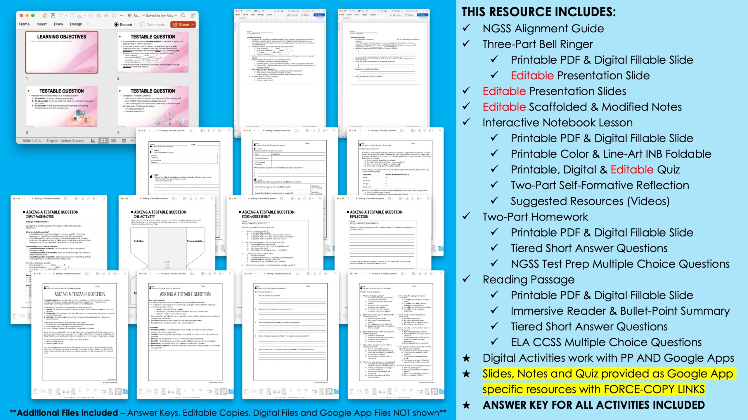 The INB lesson comes in a printable and digital form. The printable form includes an overview with the LO(s) and NGSS/DCI alignment, one page of input notes, at least one INB activity, a 4-5 question quiz and a two-part reflection exercise. The digital INB lesson is a fillable slide compatible with PowerPoint and Google Slides and includes editable input notes, a digital INB activity and a digital reflection exercise. A force-copy link for a digital Google Form quiz included. Editable DOCX files of the input notes and quiz are included. Key included.