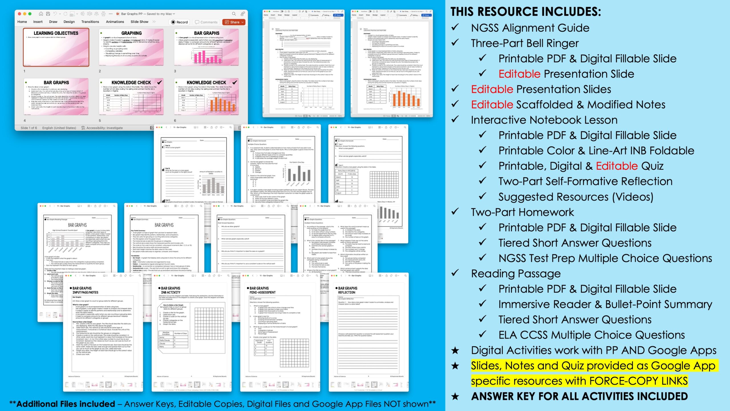 The INB lesson comes in a printable and digital form. The printable form includes an overview with the LO(s) and NGSS/DCI alignment, one page of input notes, at least one INB activity, a 4-5 question quiz and a two-part reflection exercise. The digital INB lesson is a fillable slide compatible with PowerPoint and Google Slides and includes editable input notes, a digital INB activity and a digital reflection exercise. A force-copy link for a digital Google Form quiz included. Editable DOCX files of the input notes and quiz are included. Key included.