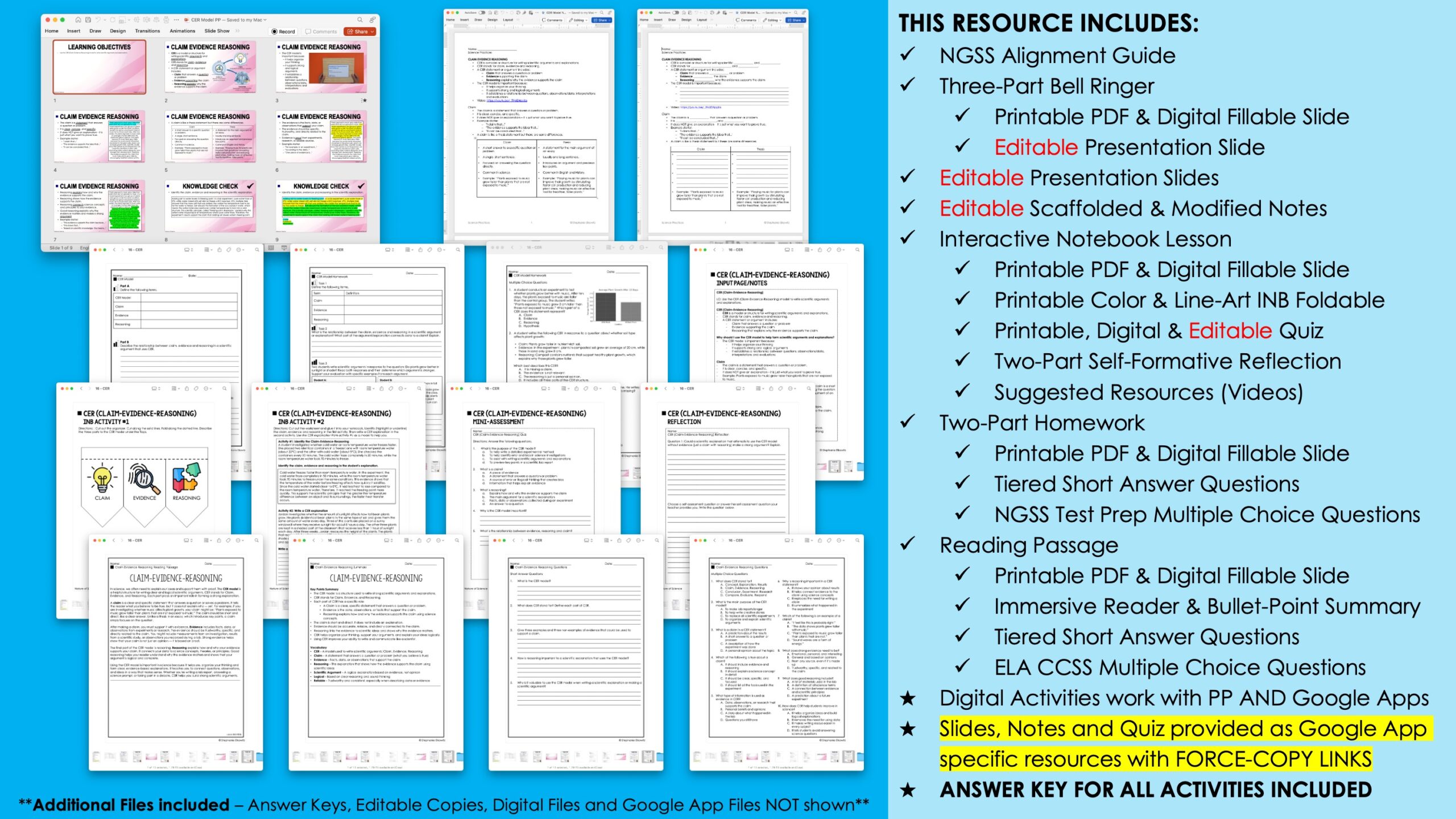The INB lesson comes in a printable and digital form. The printable form includes an overview with the LO(s) and NGSS/DCI alignment, one page of input notes, at least one INB activity, a 4-5 question quiz and a two-part reflection exercise. The digital INB lesson is a fillable slide compatible with PowerPoint and Google Slides and includes editable input notes, a digital INB activity and a digital reflection exercise. A force-copy link for a digital Google Form quiz included. Editable DOCX files of the input notes and quiz are included. Key included.