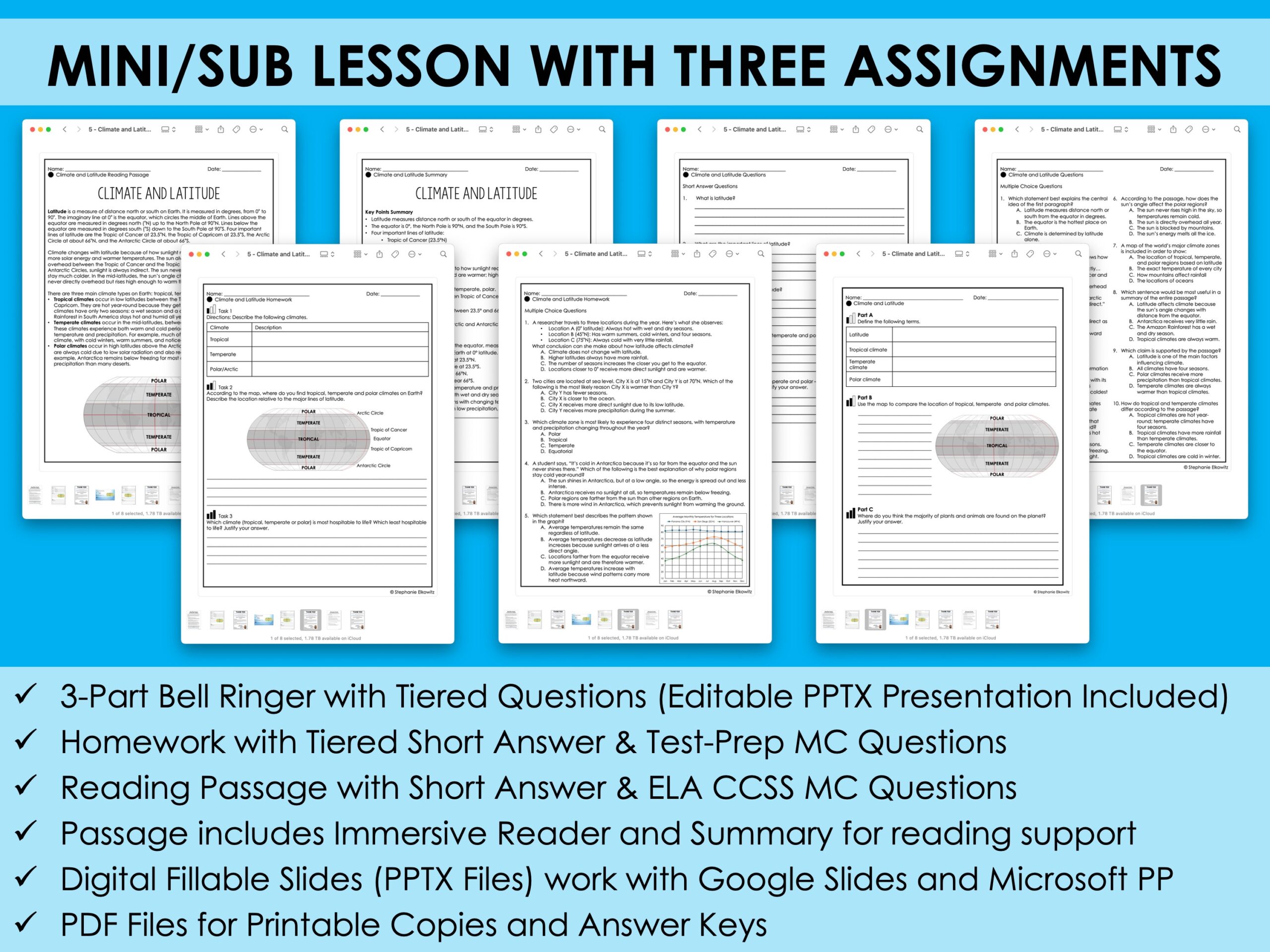 A pack of activities perfect for a mini-lesson or sub plans! Three-part bell ringer designed to be a warm-up or exit slip. Homework with tiered short answer and multiple choice standardized test-style questions. Reading passage with short answer and multiple choice ELA CCS questions. Immersive reader capabilities allow passage to be read aloud or translated into 200+ languages. Printable and digital activities included.
