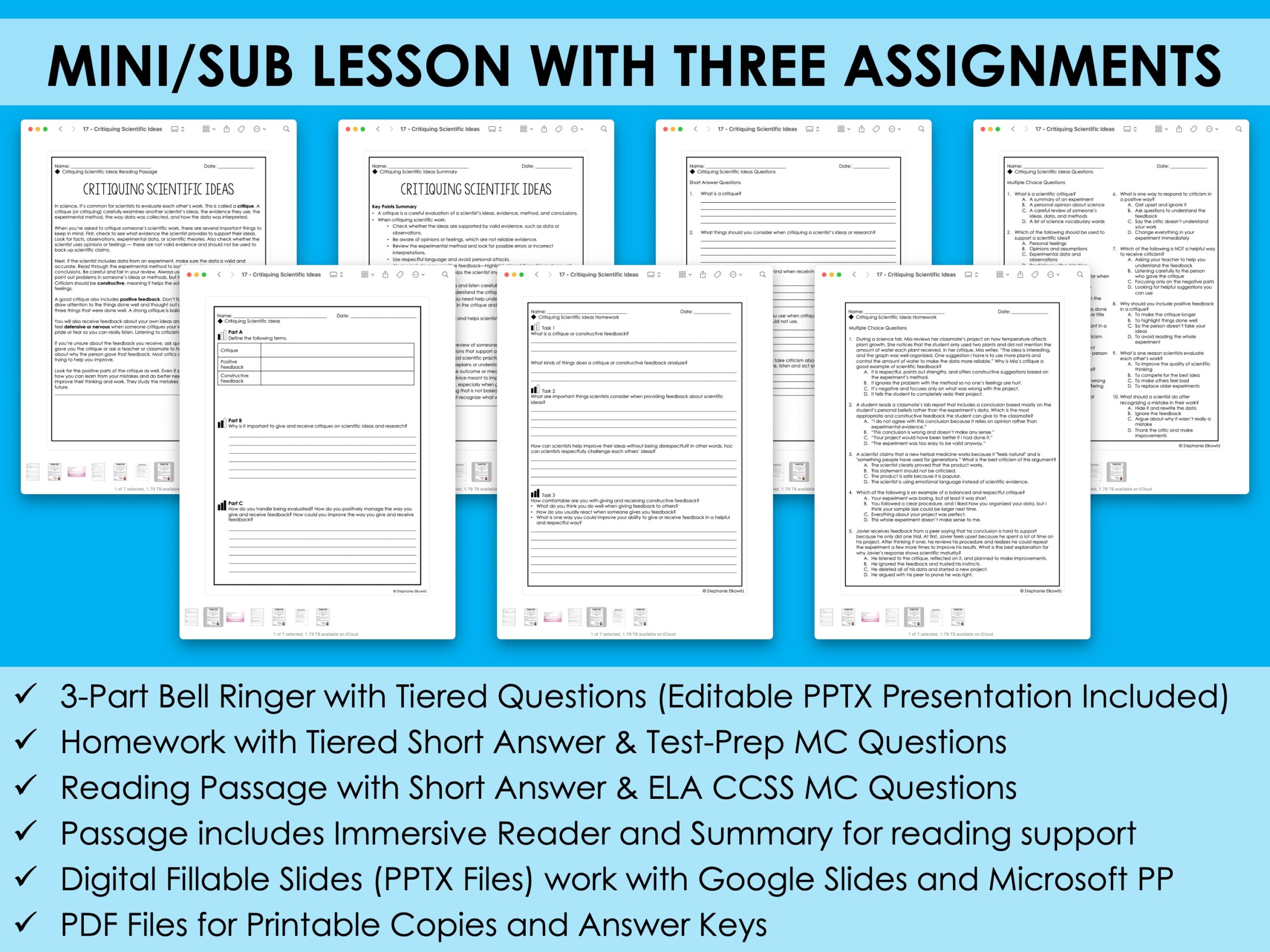 Critiquing Scientific Ideas Mini Lesson | Sub Plans