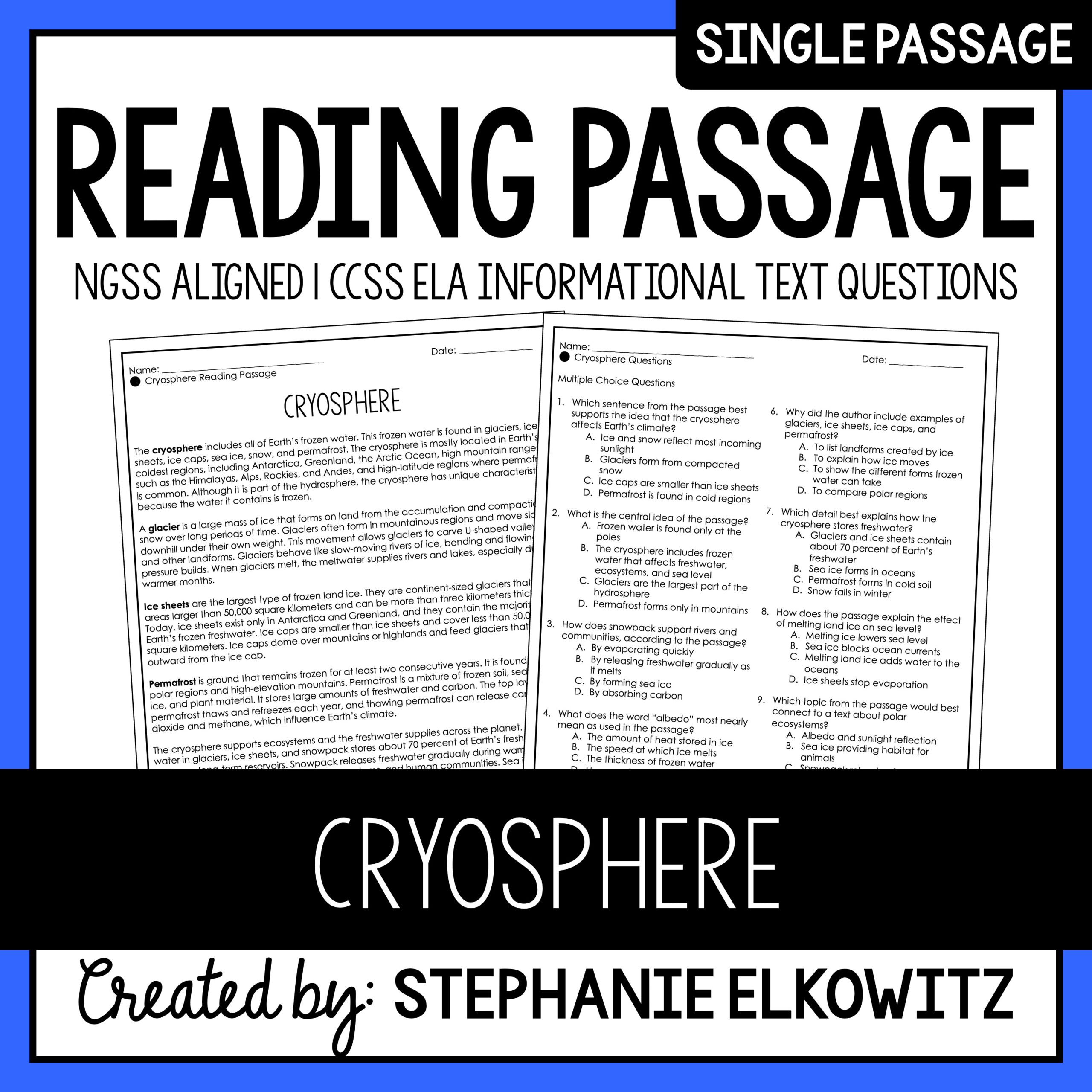 • Multiple choice questions align with informational text ELA CCSS standards