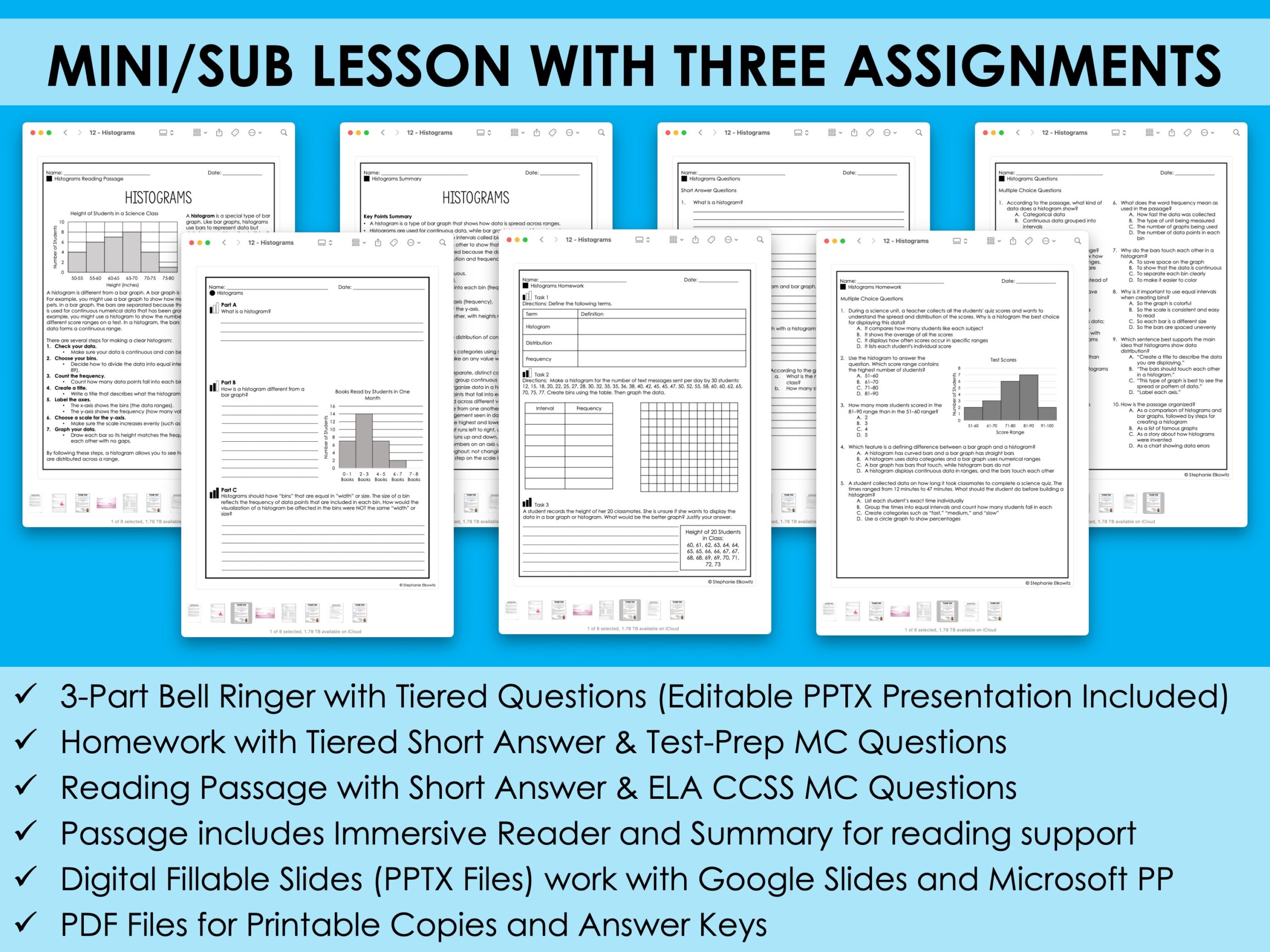 A pack of activities perfect for a mini-lesson or sub plans! Three-part bell ringer designed to be a warm-up or exit slip. Homework with tiered short answer and multiple choice standardized test-style questions. Reading passage with short answer and multiple choice ELA CCS questions. Immersive reader capabilities allow passage to be read aloud or translated into 200+ languages. Printable and digital activities included.