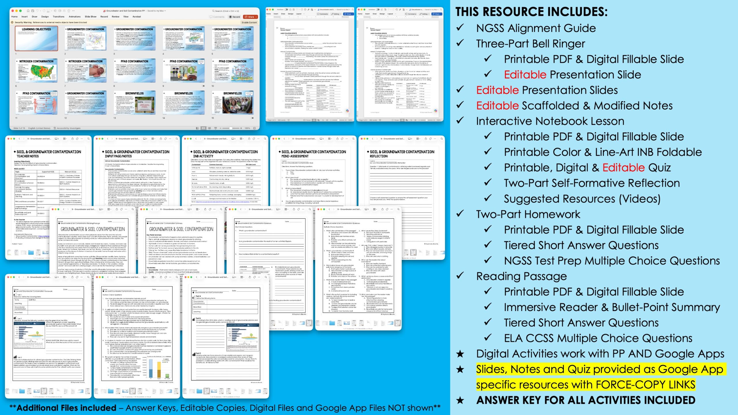 The INB lesson comes in a printable and digital form. The printable form includes an overview with the LO(s) and NGSS/DCI alignment, one page of input notes, at least one INB activity, a 4-5 question quiz and a two-part reflection exercise. The digital INB lesson is a fillable slide compatible with PowerPoint and Google Slides and includes editable input notes, a digital INB activity and a digital reflection exercise. A force-copy link for a digital Google Form quiz included. Editable DOCX files of the input notes and quiz are included. Key included.