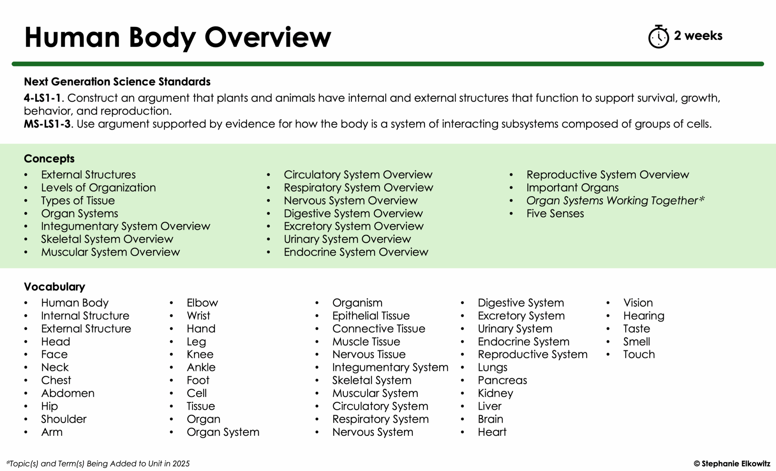 • The unit goal is to provide an overview of the human body, organ systems and some organs.