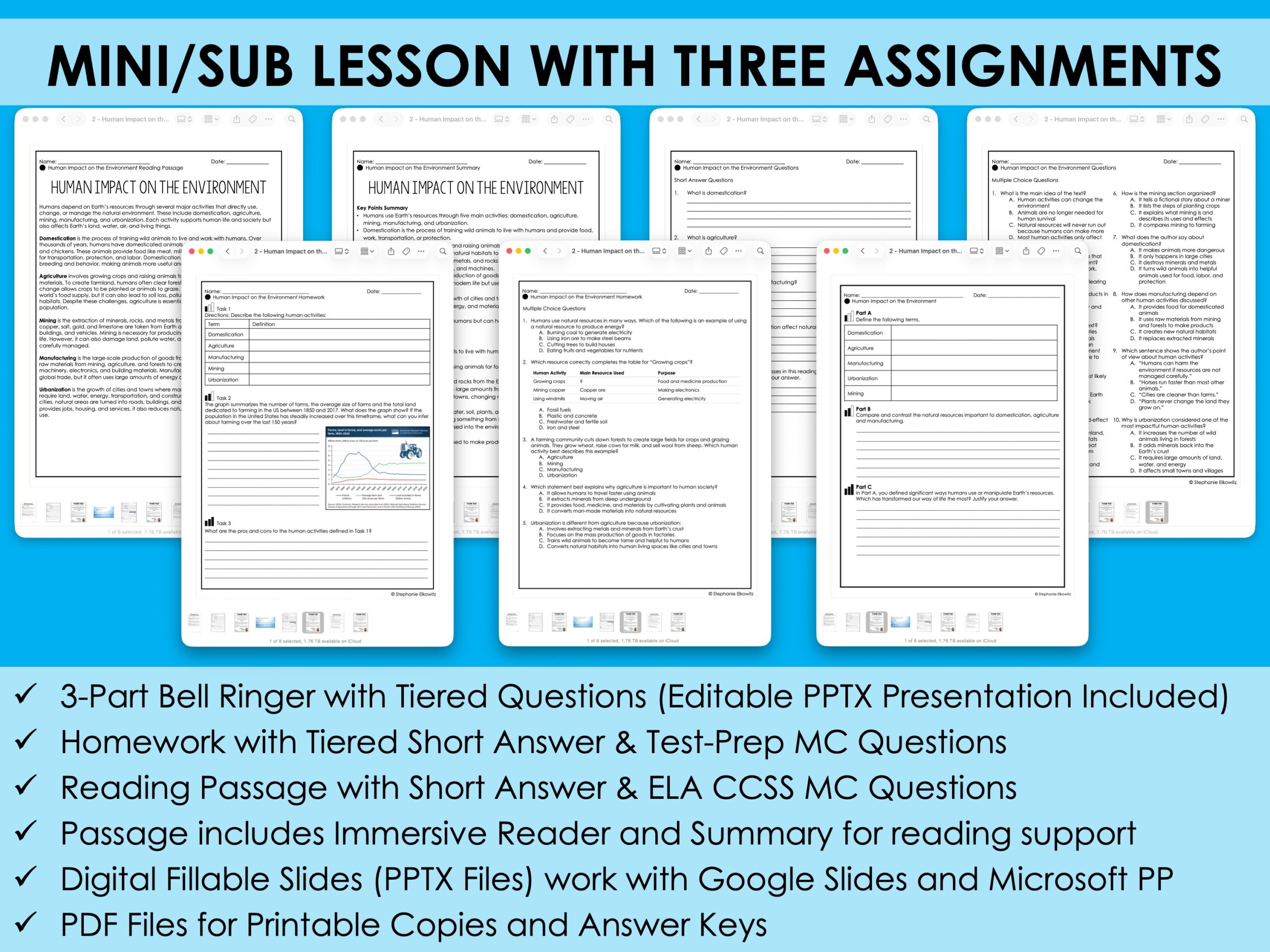 Human Impact on the Environment Mini Lesson | Sub Plans