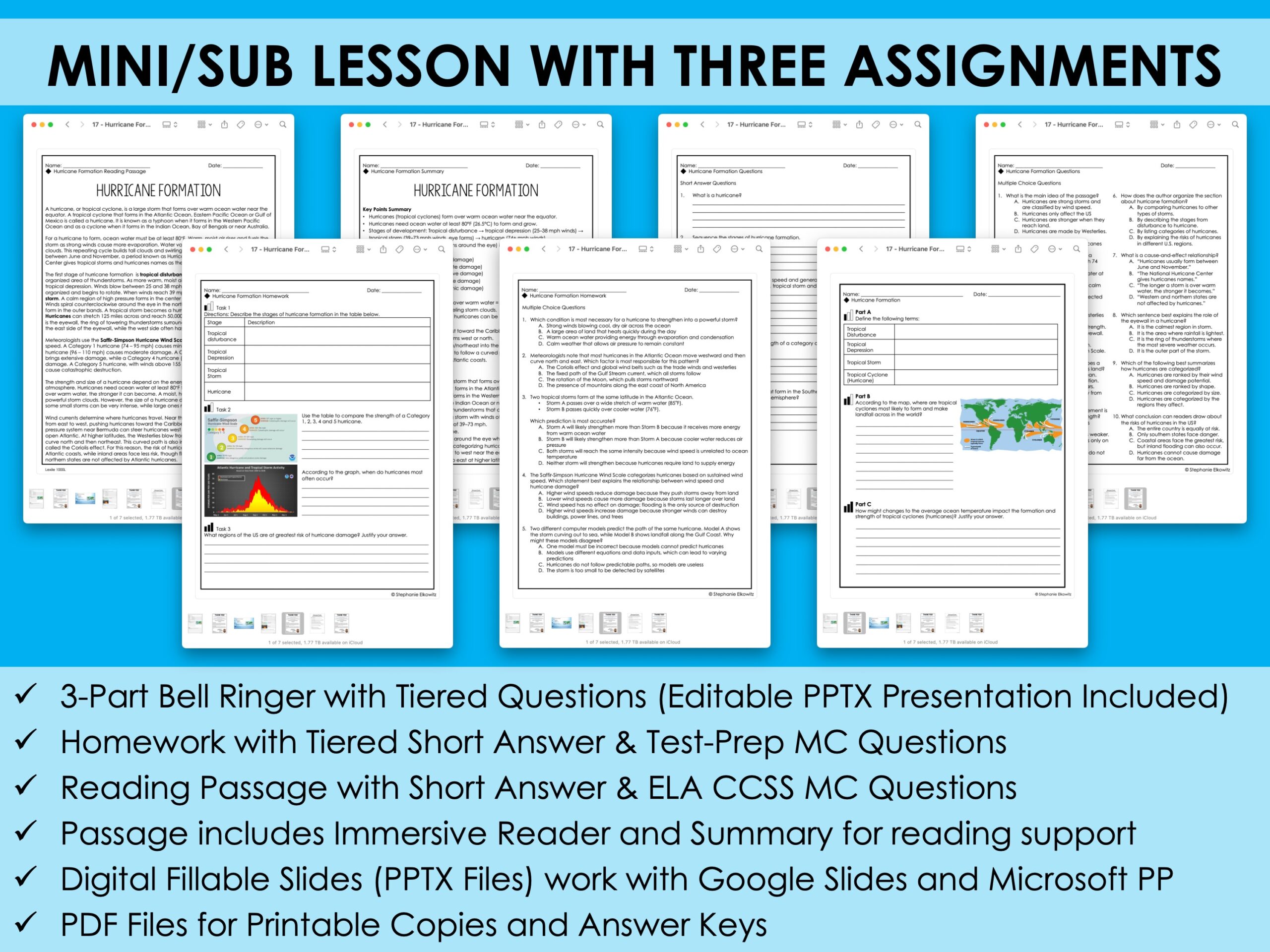 A pack of activities perfect for a mini-lesson or sub plans! Three-part bell ringer designed to be a warm-up or exit slip. Homework with tiered short answer and multiple choice standardized test-style questions. Reading passage with short answer and multiple choice ELA CCS questions. Immersive reader capabilities allow passage to be read aloud or translated into 200+ languages. Printable and digital activities included.