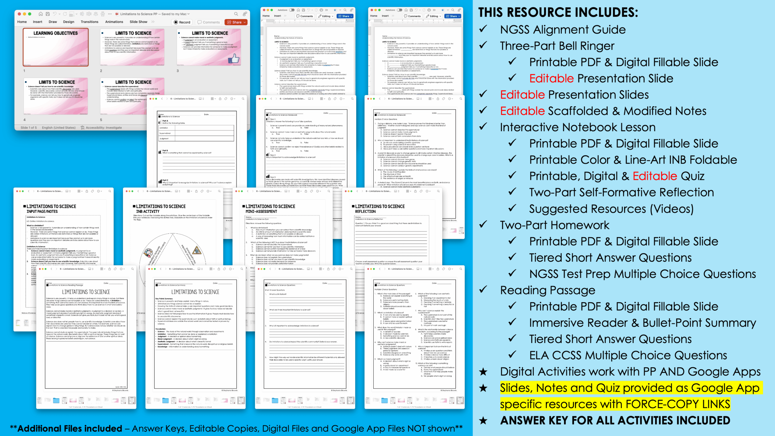 The INB lesson comes in a printable and digital form. The printable form includes an overview with the LO(s) and NGSS/DCI alignment, one page of input notes, at least one INB activity, a 4-5 question quiz and a two-part reflection exercise. The digital INB lesson is a fillable slide compatible with PowerPoint and Google Slides and includes editable input notes, a digital INB activity and a digital reflection exercise. A force-copy link for a digital Google Form quiz included. Editable DOCX files of the input notes and quiz are included. Key included.
