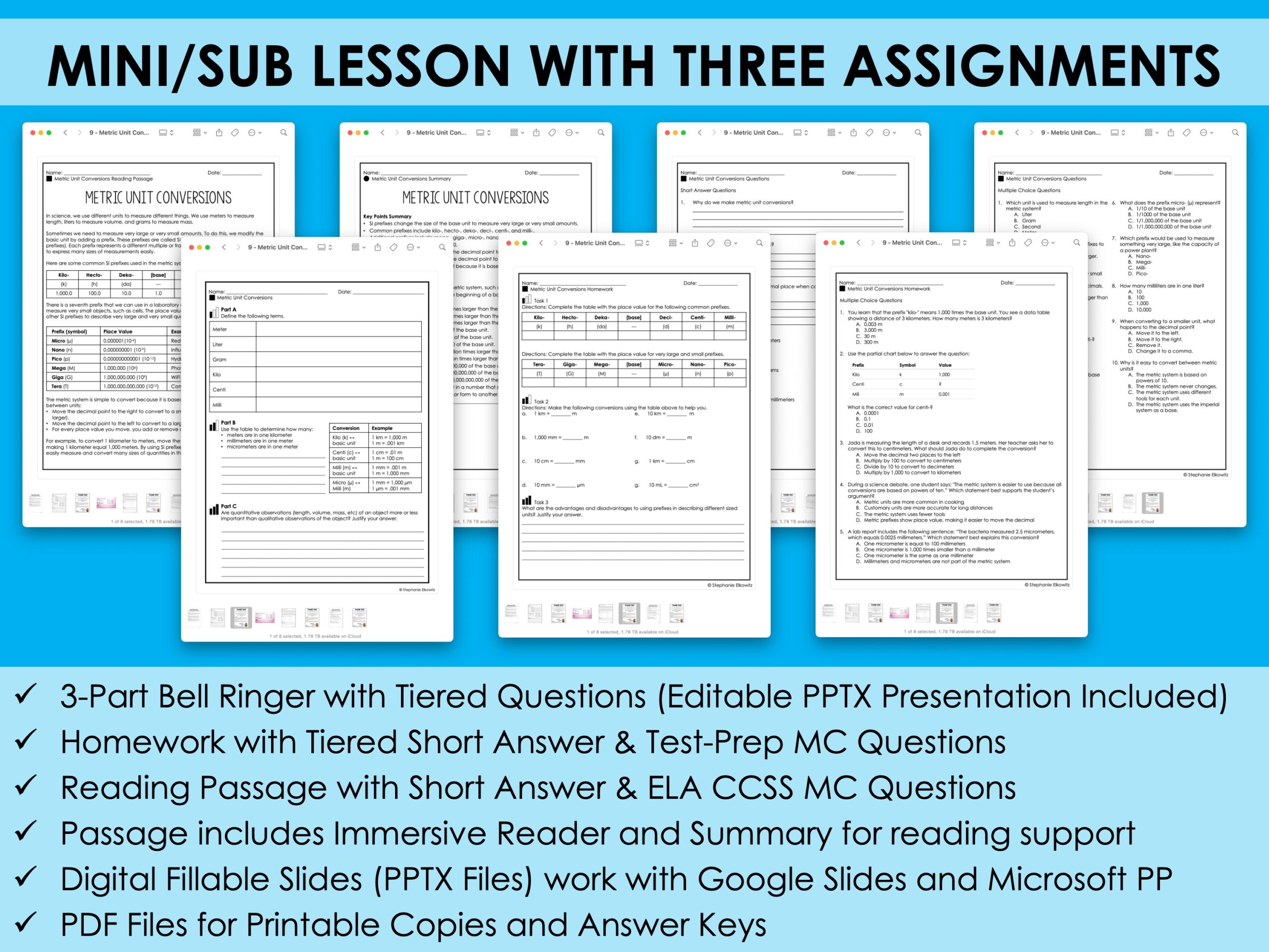 Metric Unit Conversions Mini Lesson | Sub Plans