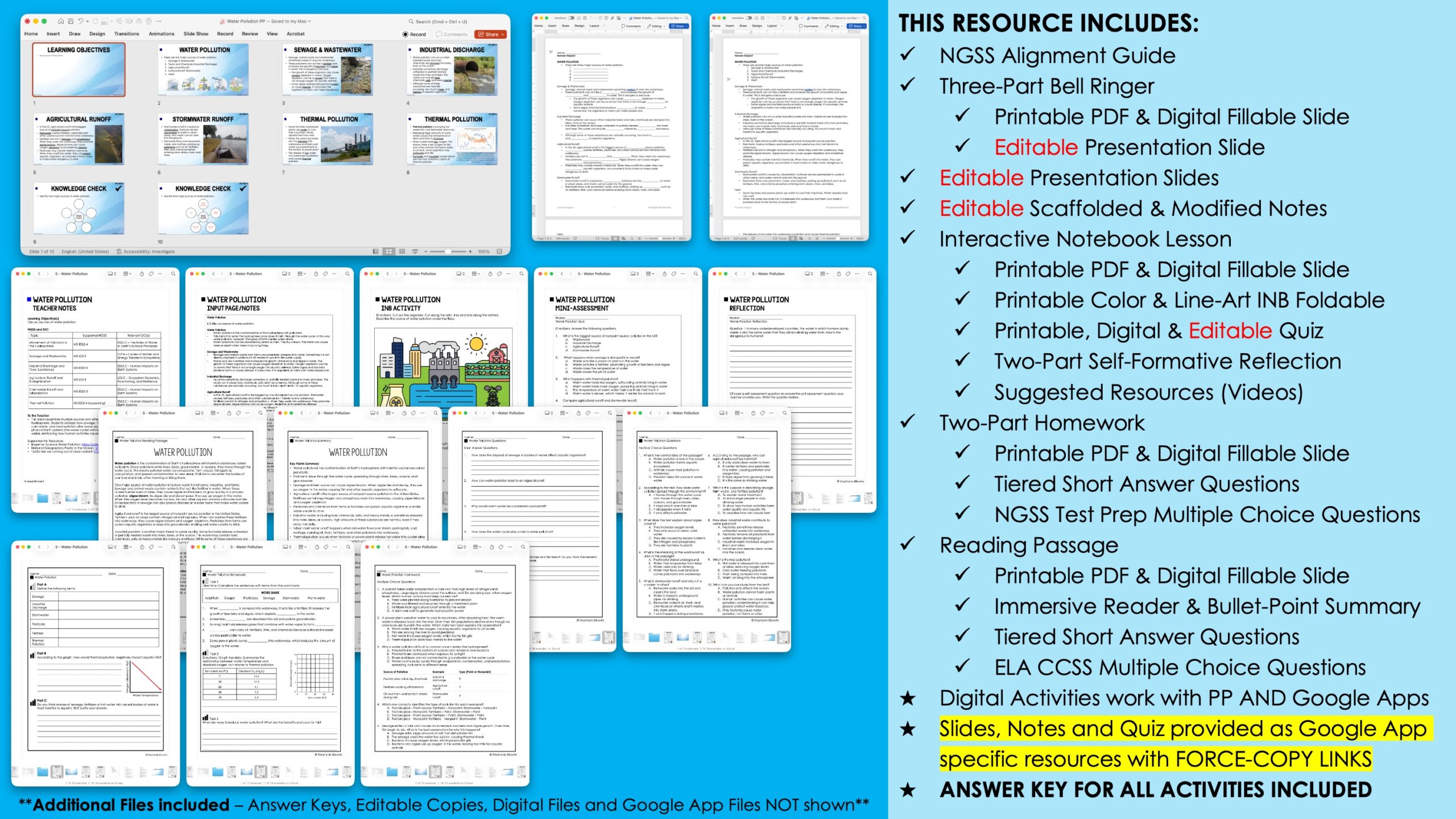 The INB lesson comes in a printable and digital form. The printable form includes an overview with the LO(s) and NGSS/DCI alignment, one page of input notes, at least one INB activity, a 4-5 question quiz and a two-part reflection exercise. The digital INB lesson is a fillable slide compatible with PowerPoint and Google Slides and includes editable input notes, a digital INB activity and a digital reflection exercise. A force-copy link for a digital Google Form quiz included. Editable DOCX files of the input notes and quiz are included. Key included.