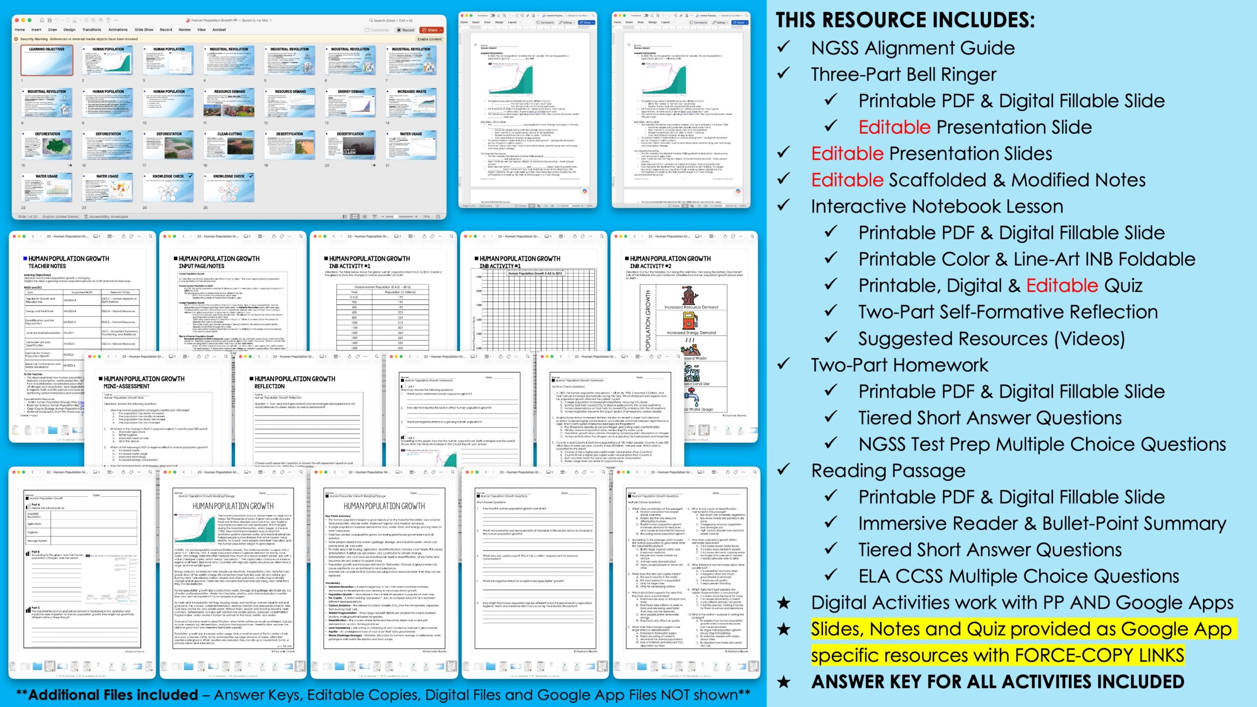 The INB lesson comes in a printable and digital form. The printable form includes an overview with the LO(s) and NGSS/DCI alignment, one page of input notes, at least one INB activity, a 4-5 question quiz and a two-part reflection exercise. The digital INB lesson is a fillable slide compatible with PowerPoint and Google Slides and includes editable input notes, a digital INB activity and a digital reflection exercise. A force-copy link for a digital Google Form quiz included. Editable DOCX files of the input notes and quiz are included. Key included.