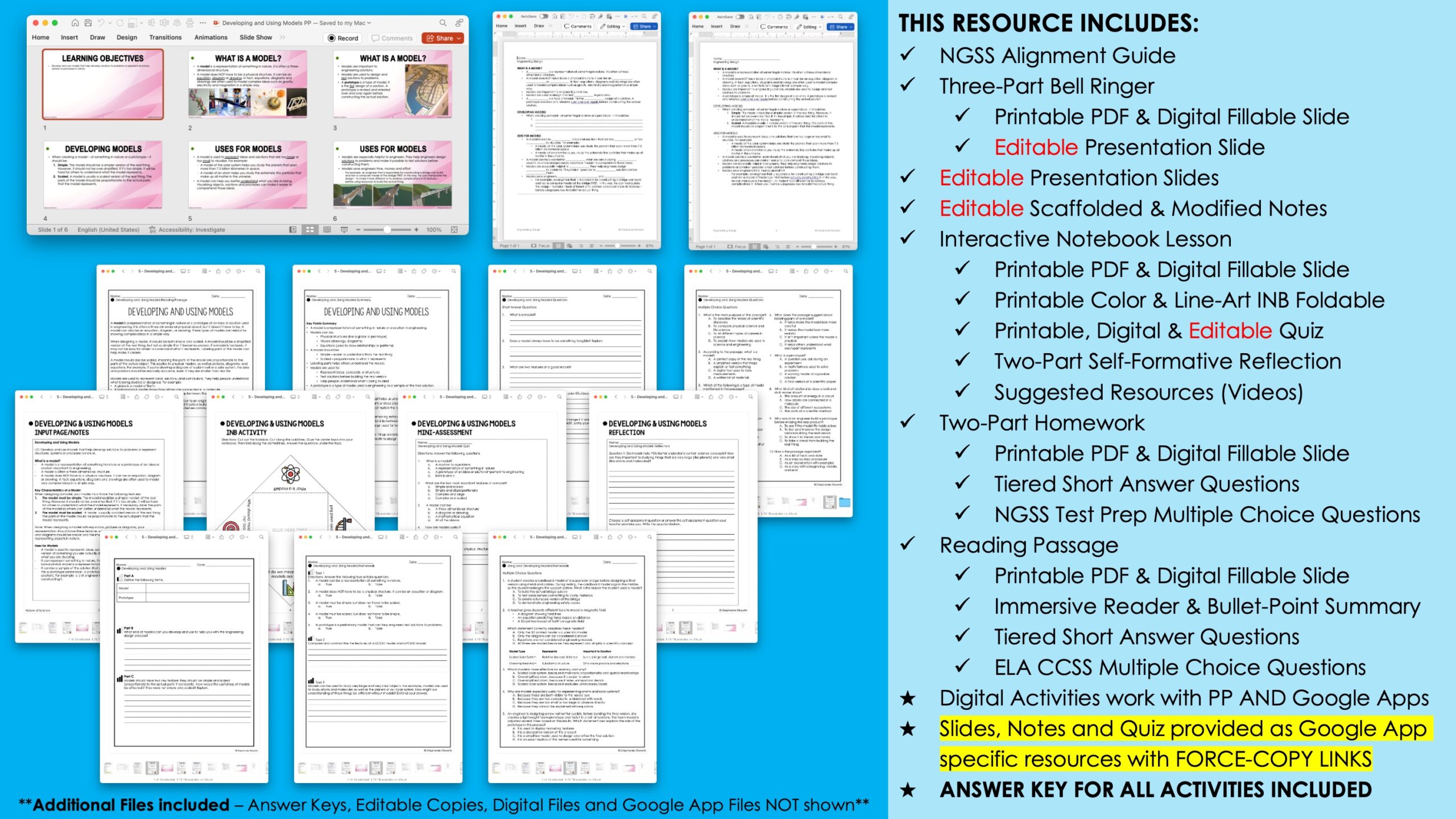 The INB lesson comes in a printable and digital form. The printable form includes an overview with the LO(s) and NGSS/DCI alignment, one page of input notes, at least one INB activity, a 4-5 question quiz and a two-part reflection exercise. The digital INB lesson is a fillable slide compatible with PowerPoint and Google Slides and includes editable input notes, a digital INB activity and a digital reflection exercise. A force-copy link for a digital Google Form quiz included. Editable DOCX files of the input notes and quiz are included. Key included.