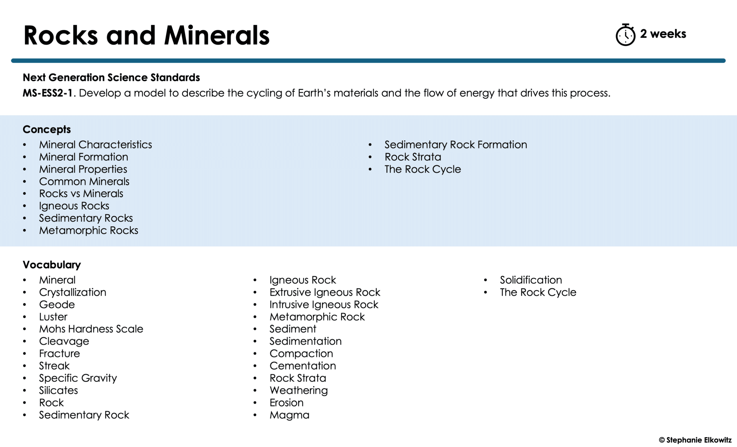 Rocks and Minerals Unit Planning Guide