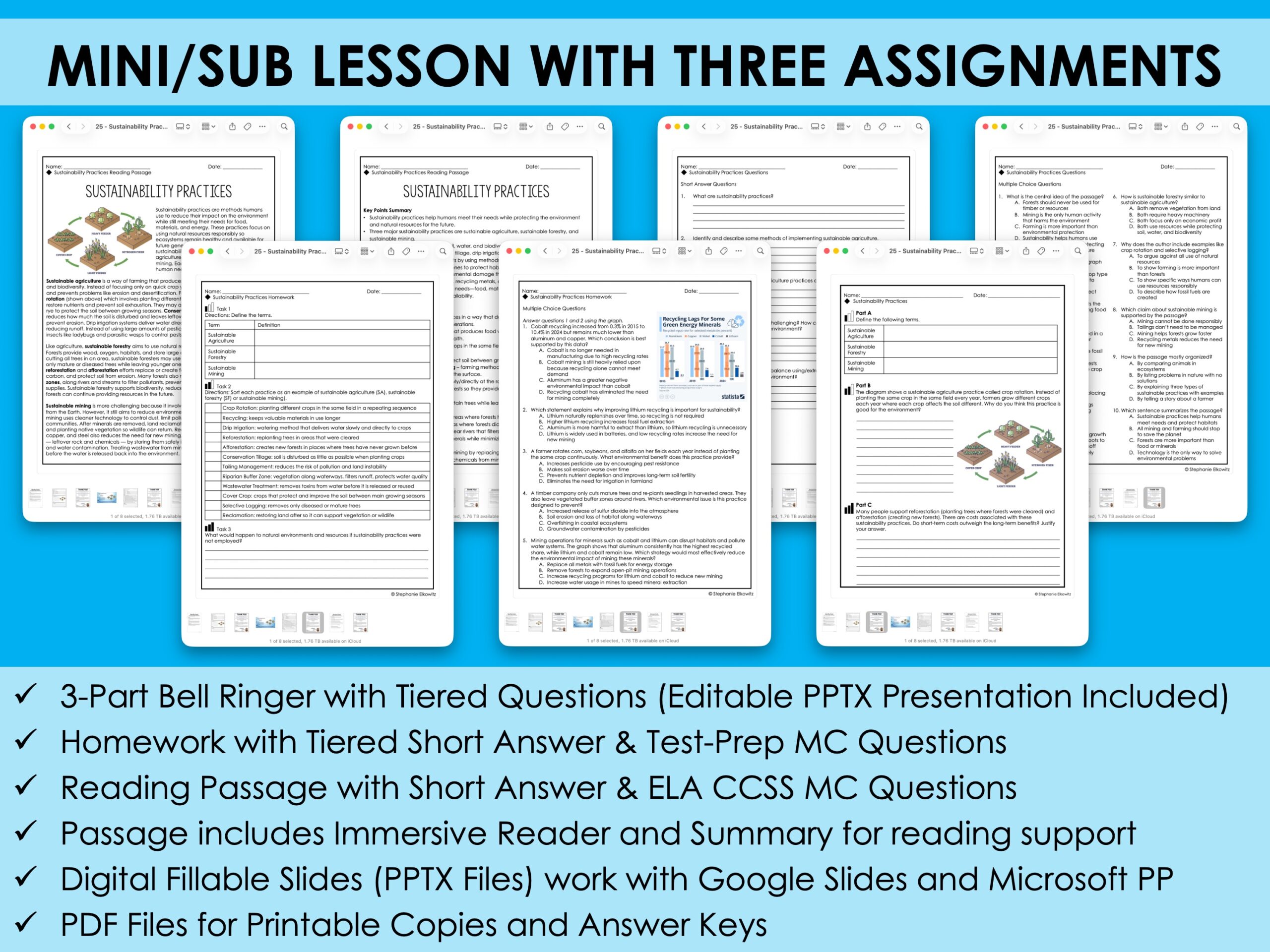 A pack of activities perfect for a mini-lesson or sub plans! Three-part bell ringer designed to be a warm-up or exit slip. Homework with tiered short answer and multiple choice standardized test-style questions. Reading passage with short answer and multiple choice ELA CCS questions. Immersive reader capabilities allow passage to be read aloud or translated into 200+ languages. Printable and digital activities included.
