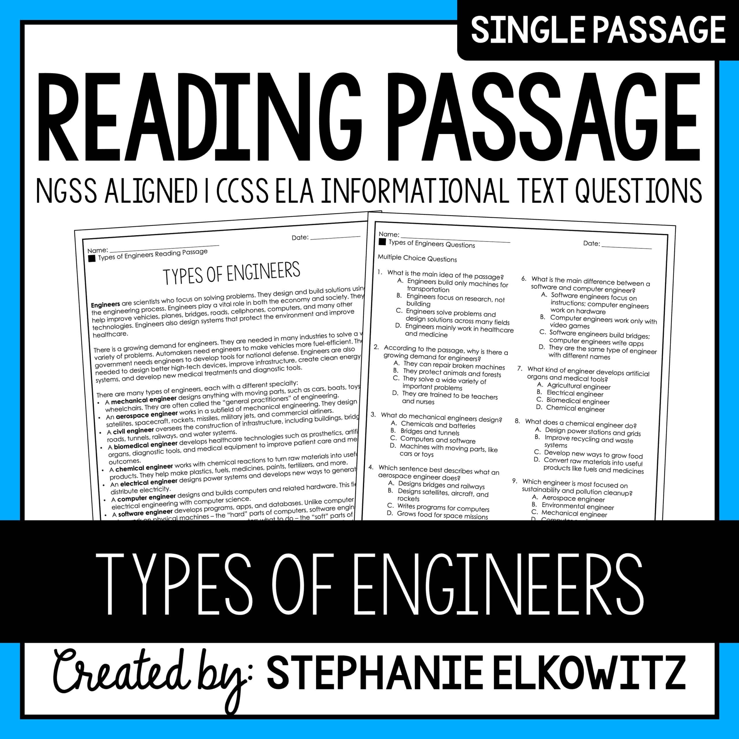 • Multiple choice questions align with informational text ELA CCSS standards