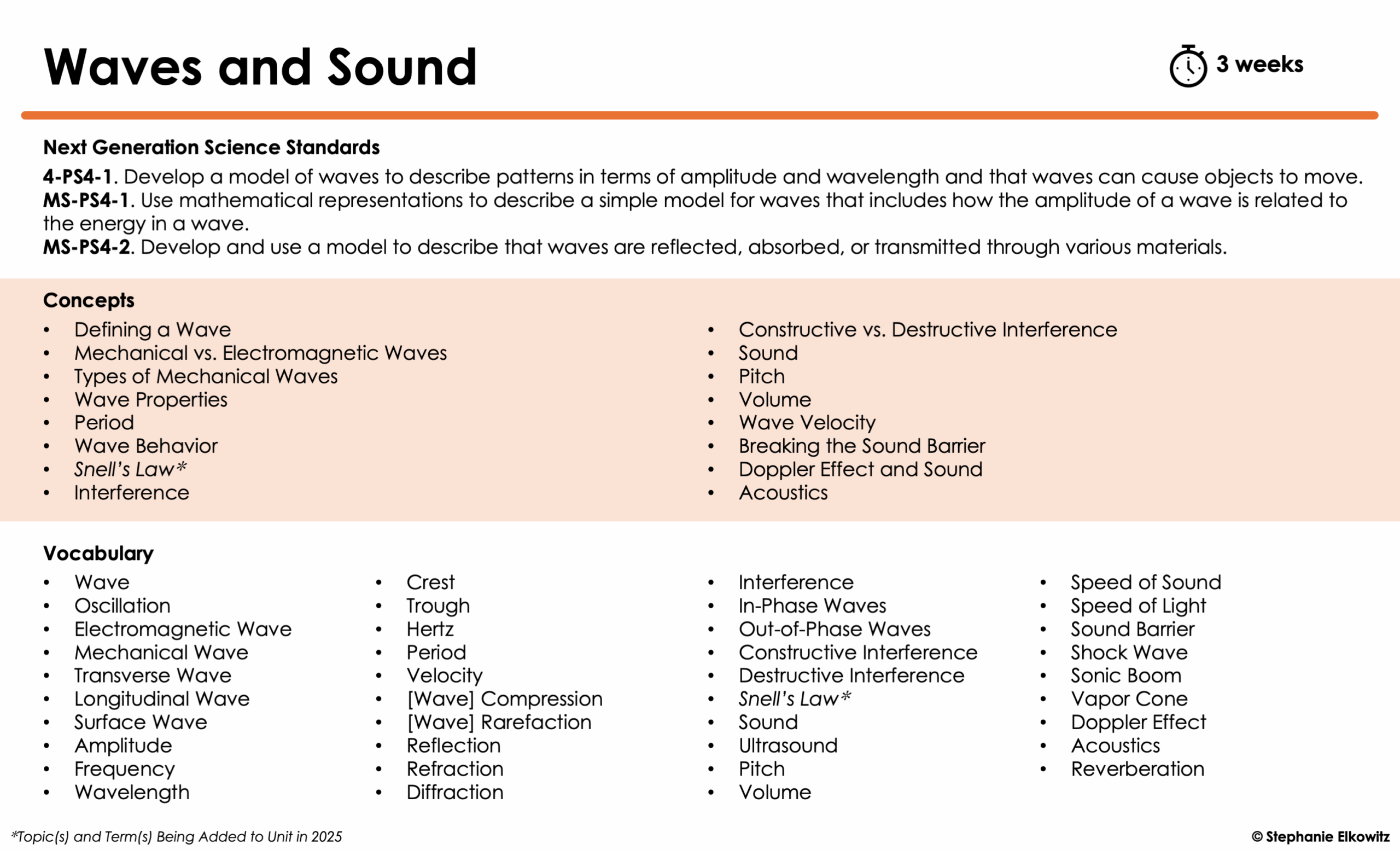 Waves and Sound Unit Planning Guide